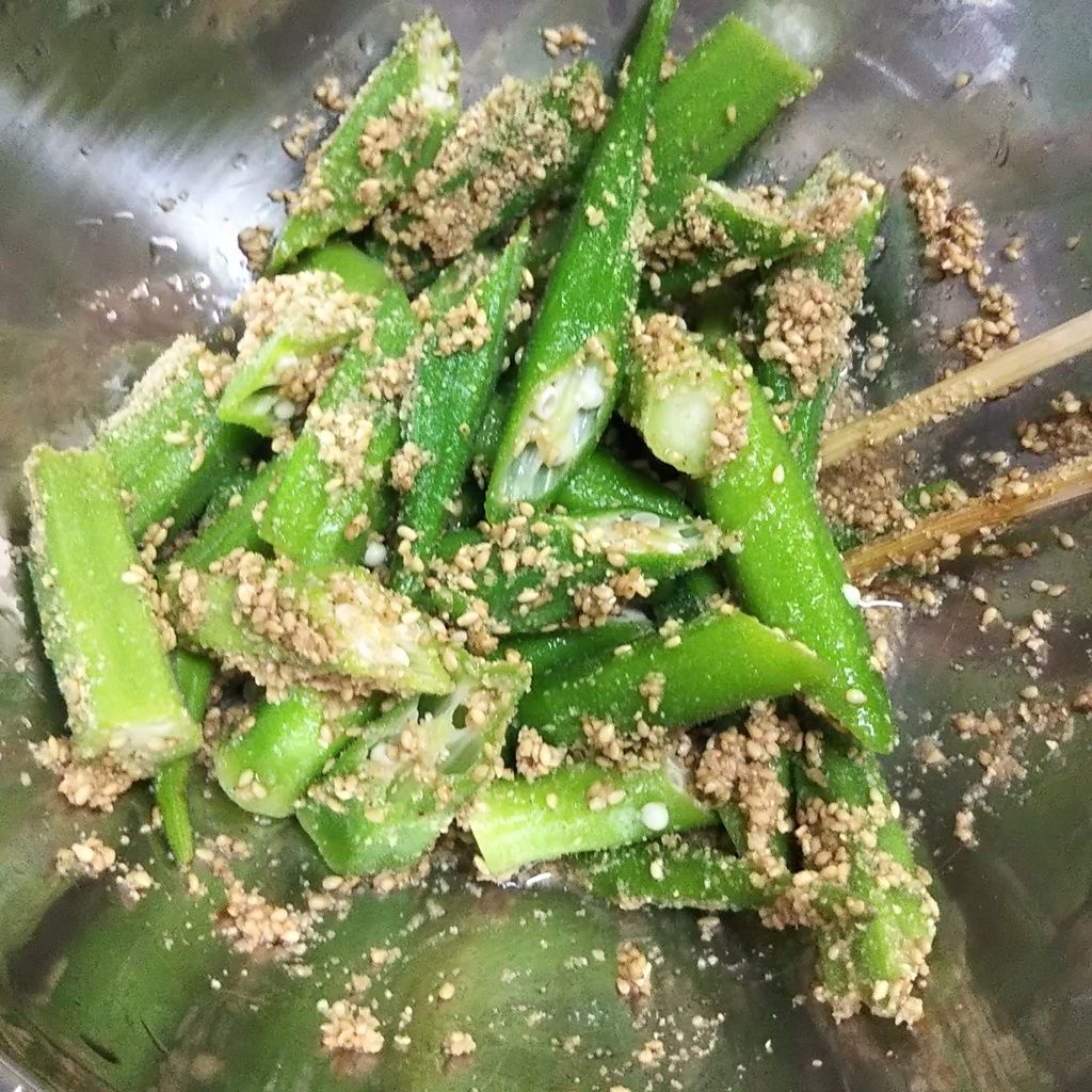 そんな夏野菜の美味しい季節に、オクラを胡麻和えにしてみました。