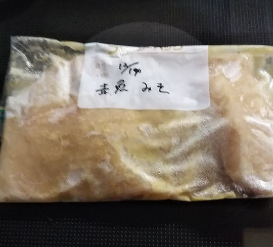 2.解凍した赤魚の味噌漬けを袋から取り出し、あらかた味噌を落とします。