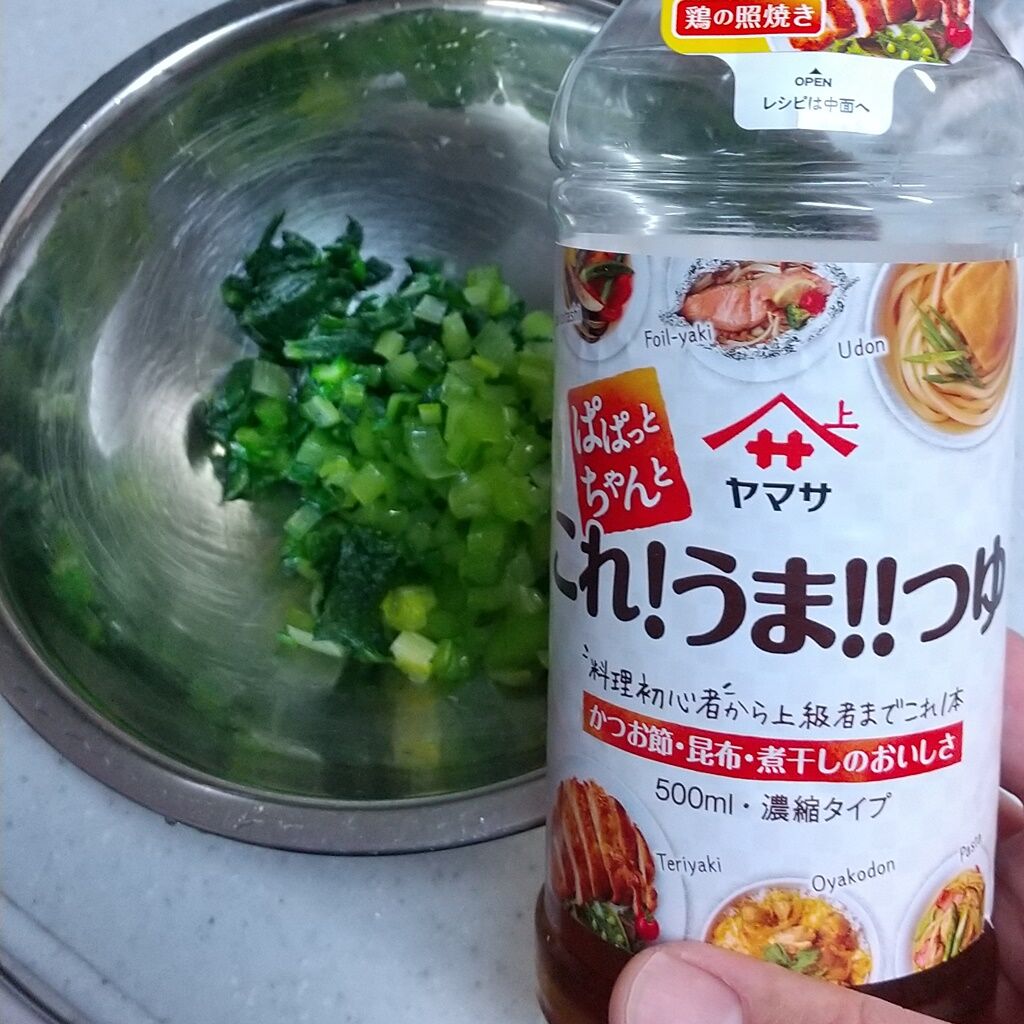 ※「ヤマサのうまつゆ」=「ヤマサ ぱぱっとちゃんと これ!うま!!つゆ」一人前あたり大さじ1加えてます。なければ、本だしとか他メーカーの麺つゆなど。