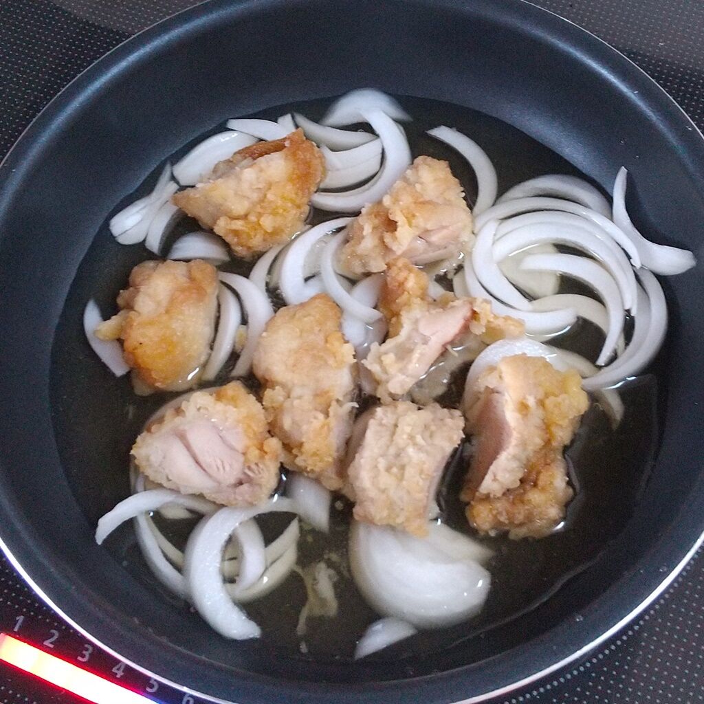 5.麺がほぐれてきたら、出汁としてヤマサのうまつゆを加えます。