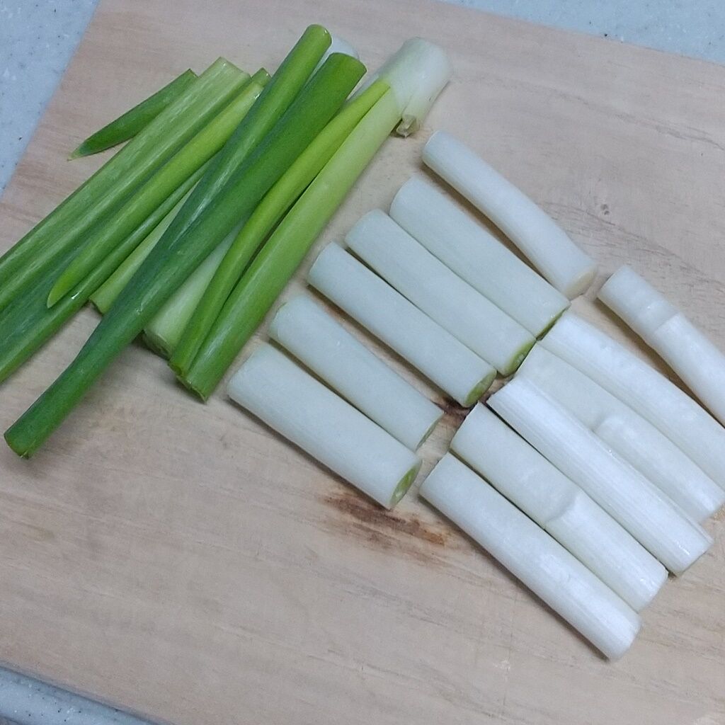 1.長ネギを4~5㎝幅に、生姜を細切りいていきます。