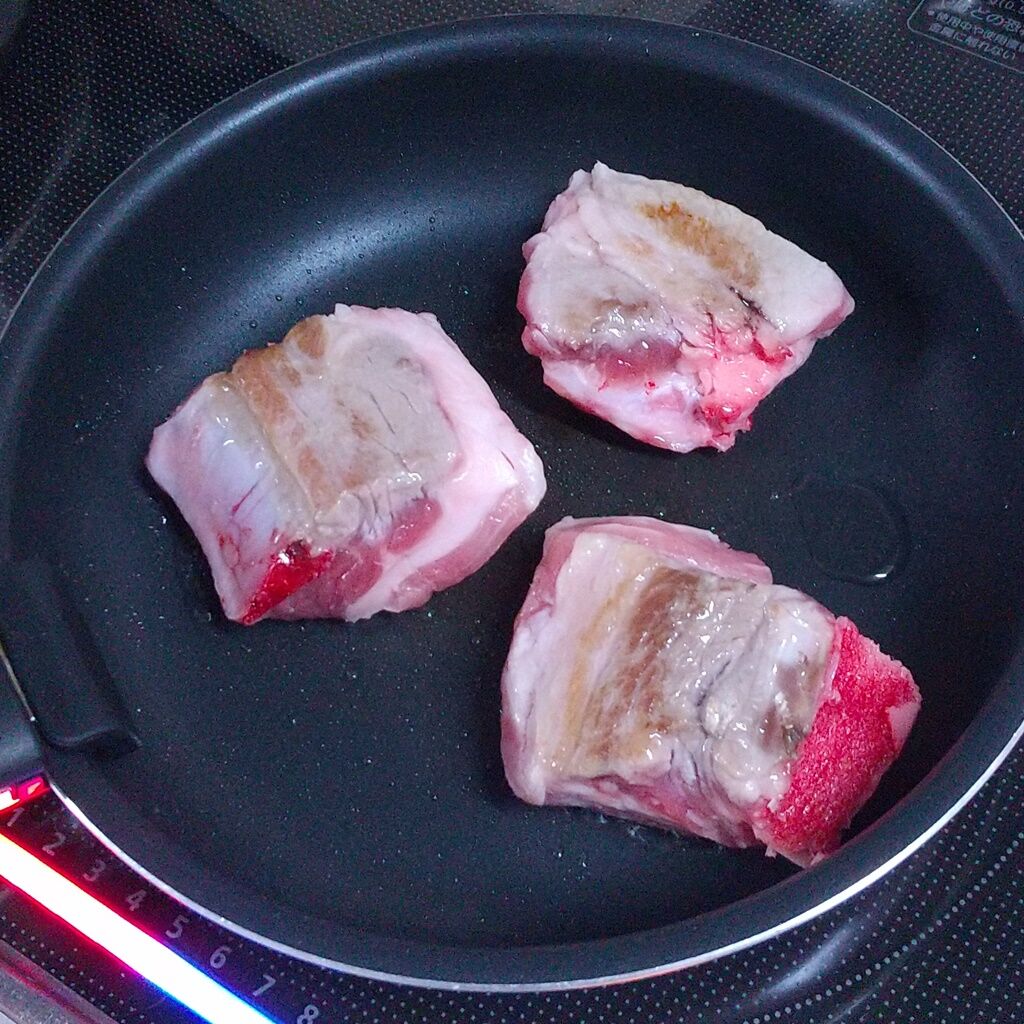 2.豚骨の表面を焦げ付きすぎないように両面を焼いていきます。