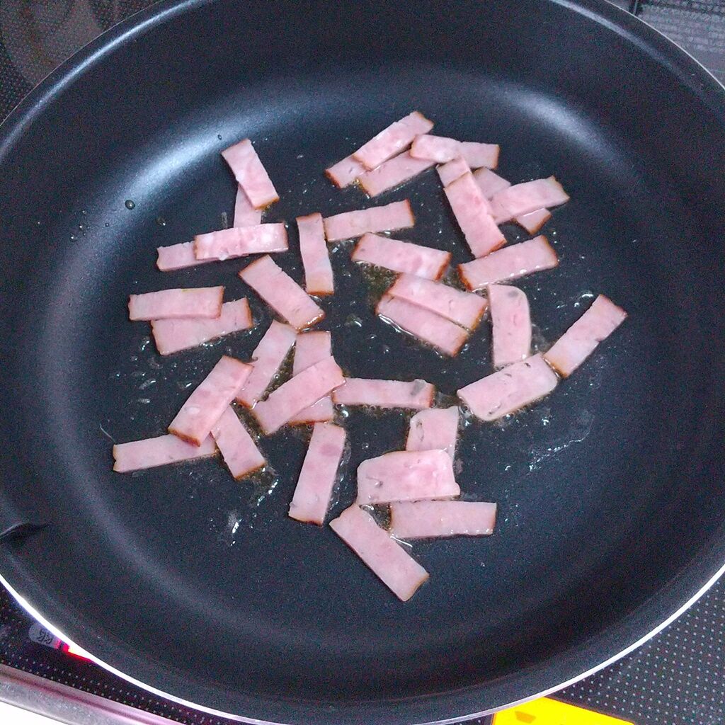 ベーコンと比べると、崩れにくいので炒めやすいです。