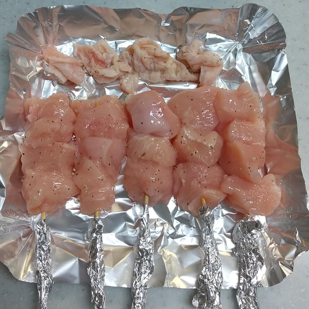 鶏むね肉で、とってもヘルシーな焼き鳥をトースターで作ってみました~(*゚▽゚*)