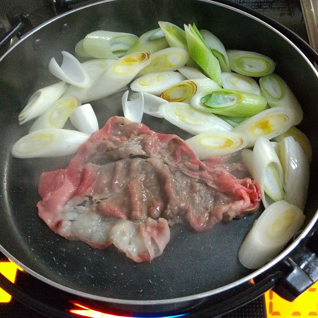 今日の料理は、『ねぎたっぷりのすき焼き』です。