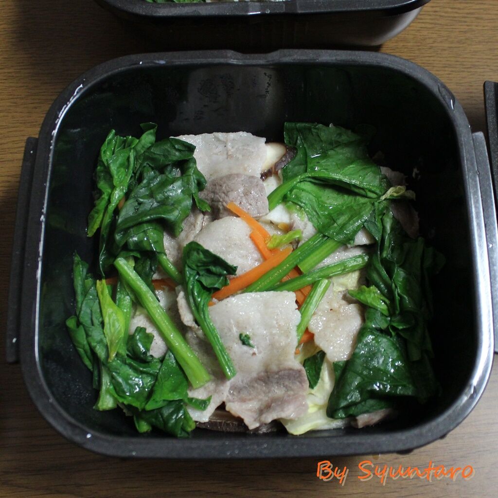 今日の料理は、グルラボプラスで簡単レンチン調理『1/2日分の野菜が摂れる豚バラの酒蒸し』です。