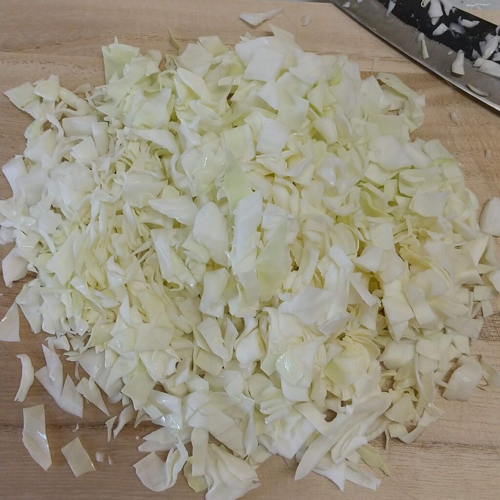 1.キャベツを粗めのみじん切りにし、寿司酢と共にポリ袋に入れて、冷蔵庫で30分ほど寝かせます。
