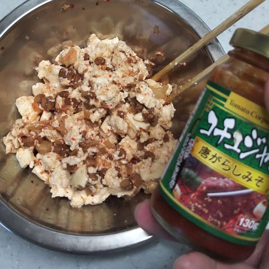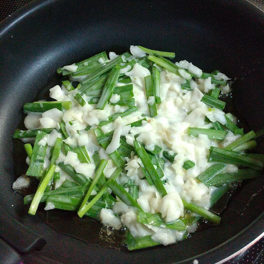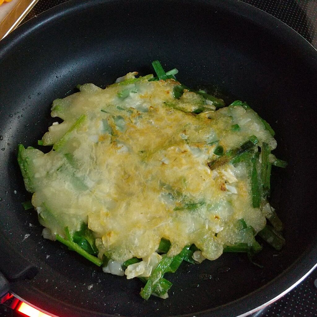 そんな納豆をニラチヂミに混ぜて焼いてみました~。