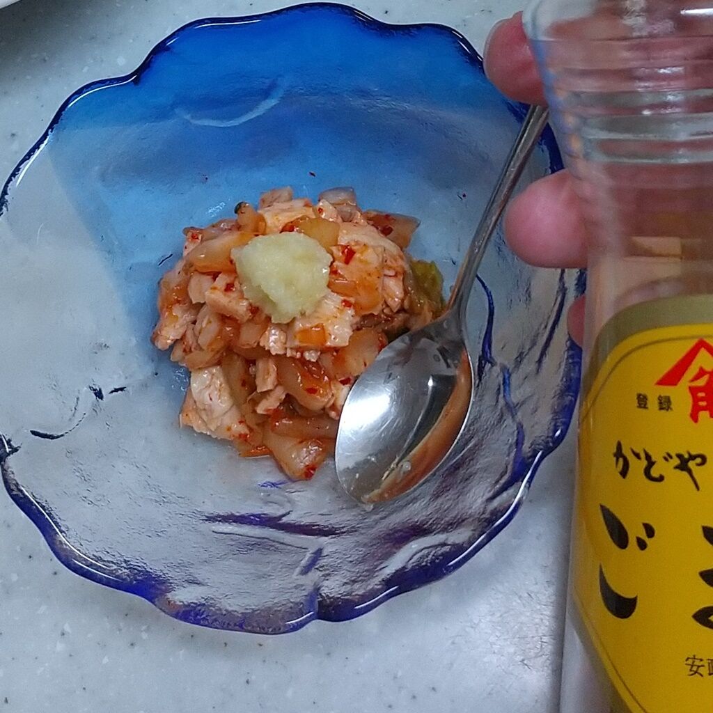 キムチと一緒に、酢醤油でいただいたのですが、豆の食感が楽しいです。