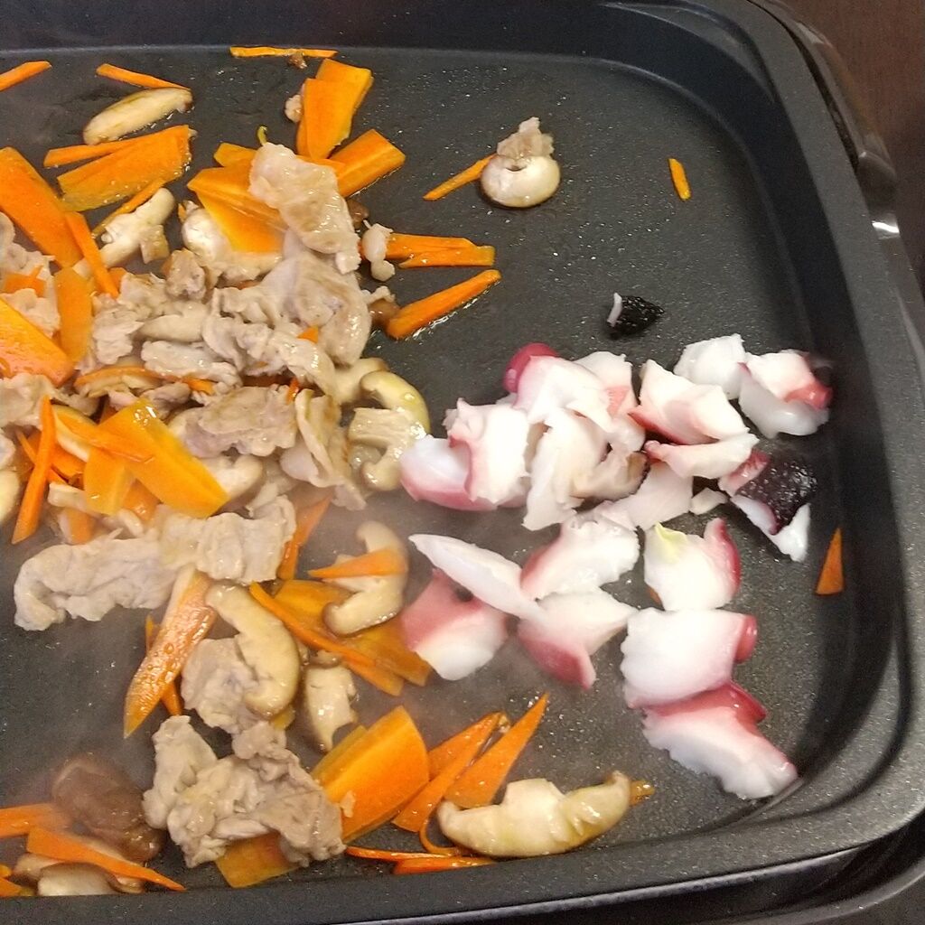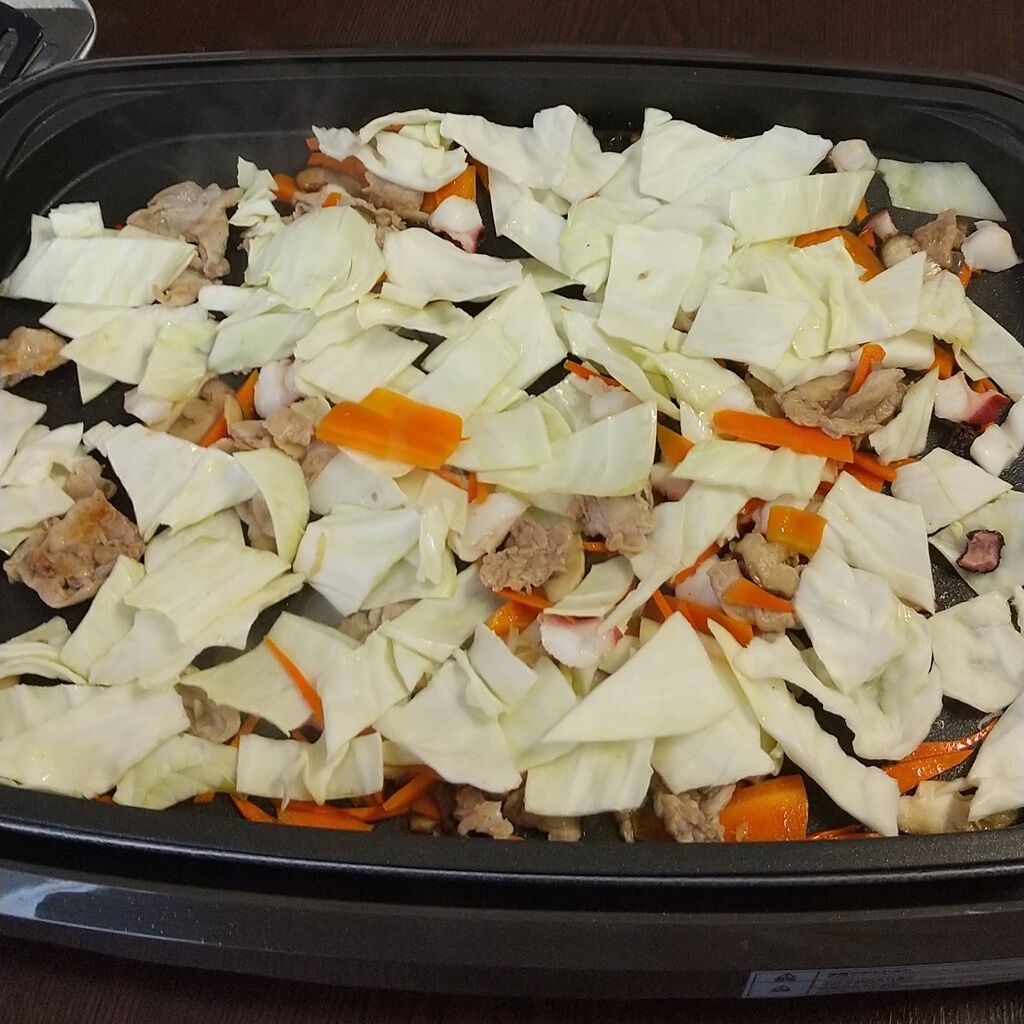 キッチンで作ると、どうしても冷めていきがちな料理が、熱々でいただけるのもホットプレートめしのいいところですね~('▽'*)ニパッ♪