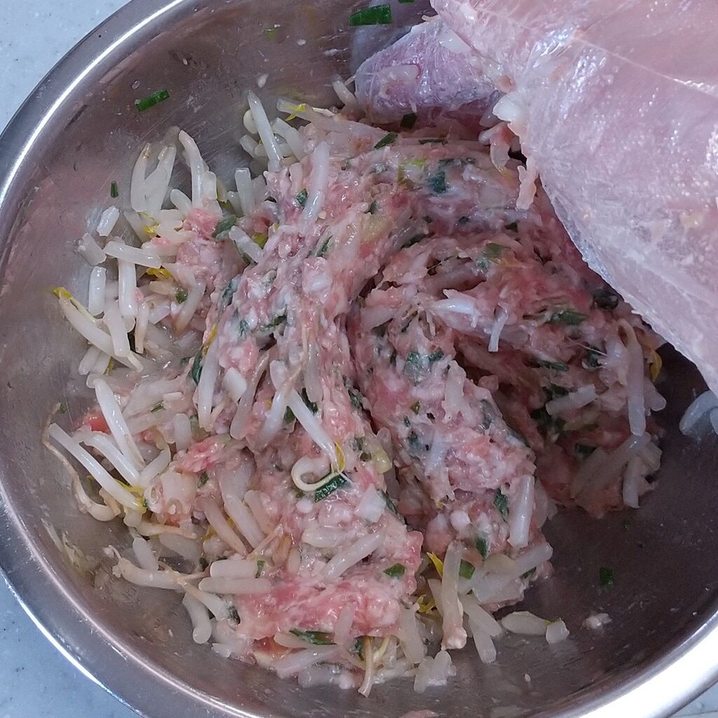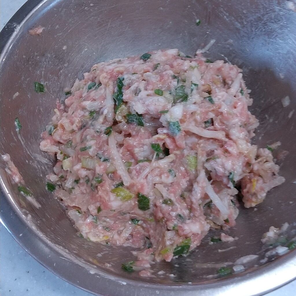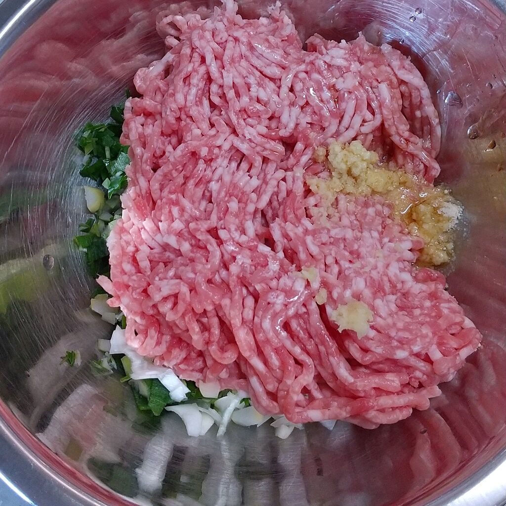 2.パテを作ります。今回使用するのは、合挽の粗びきと普通のひき肉を合わせます。塩、こしょう、薄力粉を加えて、粘りが出るまで練り上げます。